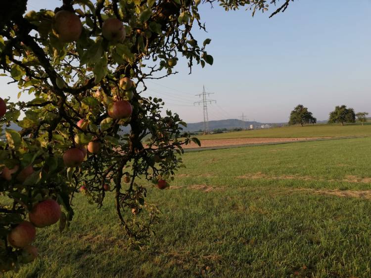 Ich freue mich, mich mitten in Nehren mitten im Steinlachtal zu wissen. Auch wegen der vielen Apfelbäume. Es gibt allein rund um Mössingen rund 20 000 Apfelbäume. Für jeden Einwohner einen. Der Baumbestand macht aber Arbeit. Der Öschinger Hans Klett hat die Situation auf den Streuobstwiesen im Jahr 2004 so zusammengefasst: „Die Leute fahren lieber nach Mallorca, statt hier auf den Wiesen Obst aufzulesen.“ Seither hat sich, den Aktivisten sei Dank, einiges getan. Aber es musste auch einiges getan werden. Doch die aus Marketinggründen „Streuobstparadies“ benannte und zum „Verein“ angemeldete Landschaft geht vor die Auspuff-Hunde, kommt die Endelbergtrasse. Die Betonfabrikanten erfreuen sich der Planungssituation „nachhaltig“. Wer sonst?