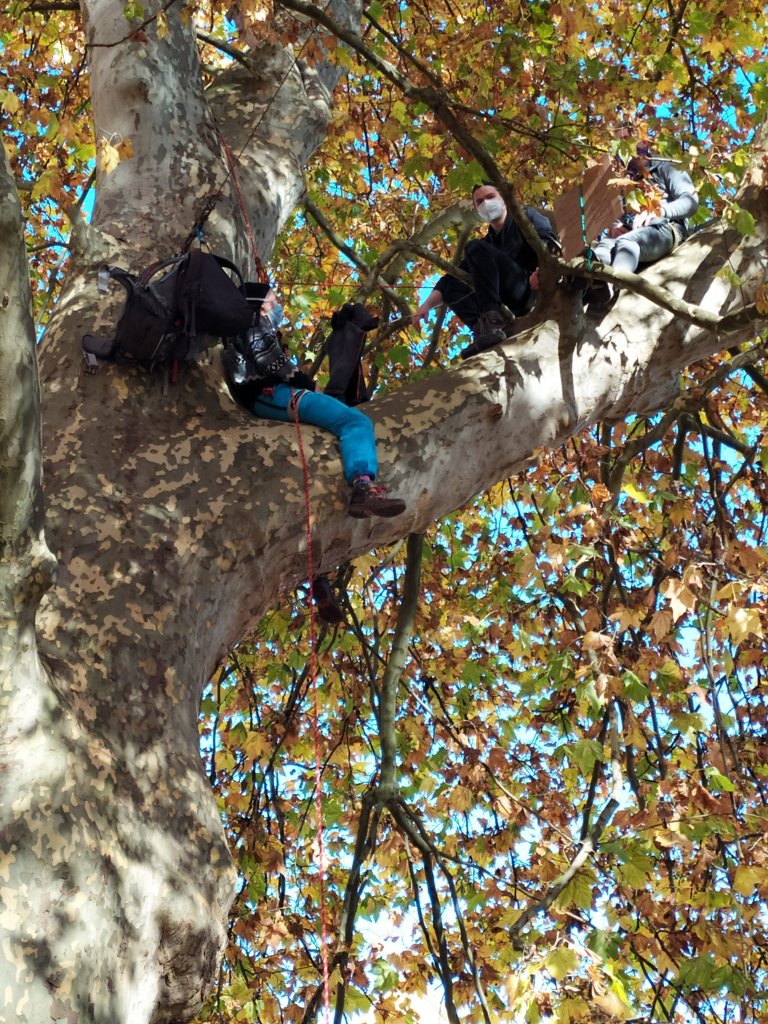 zwei Bäume auf der Neckarinsel besetzt. Sie forderten neben einem