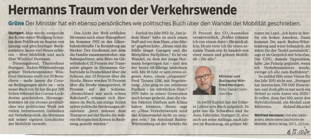 Selbst unser Landesverkehrsminister (mit dem wir, allen Unkenrufen zum Trotz, bisher zwar keinen schriftlichen Kontakt haben, in Bälde aber ein Treffen zu einer Konferenz) weiß: Verkehrswende MUSS!