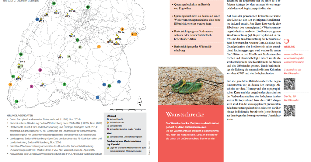 Dazu noch – und das ist noch pikanter, ist die Gemeinde durch den Zubringer am „Padeffke-Kreisel“ an die L384 betroffen. Letzerer tangiert ein Wanstschrecken-Gebiet, das die L384 umgibt und JETZT bereits gestört ist, durch diesen Zubringer aber noch weiter. Gleichzeitigt durchkreuzt die Trassenführung auch die auf Position 23 im Wiedervernetzungsplan des Landes vorgesehene prioritäre Vernetzung der Lebensräume der Schreckenart.