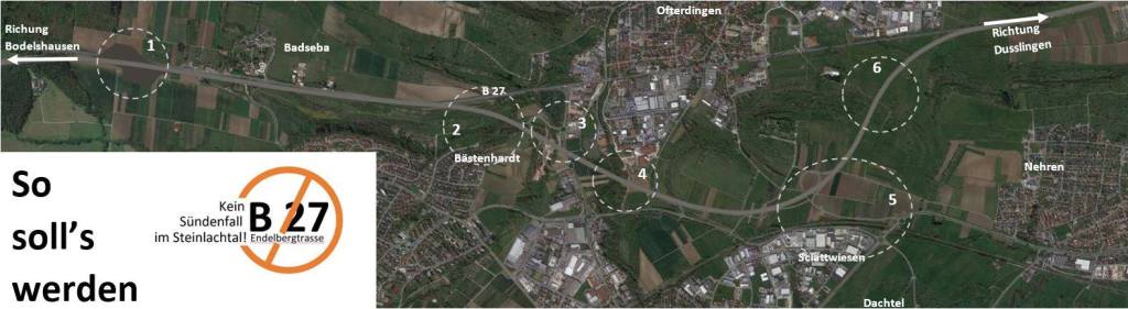 Natürlich geht es uns konkret um die Umweltzerstörung am Endelberg, das völlig sinnfrei vergeudete Geld und die nirgendwo berücksichtigten Folgekosten der immensen Bauwerke. Aber eben nicht nur. Es geht auch um die Positionierung zum Straßenneubau insgesamt.