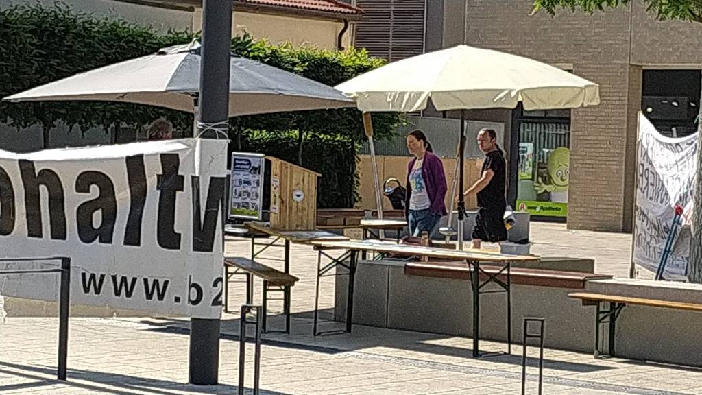 Heute stehen Jule und Thomas gemeinsam mit Julian von der BI „Kein Sündenfall im Steinlachtal“ vor dem Mössinger Gesundheitszentrum (siehe Bilder im Originalblogbeitrag). Dort erklären und erläutern sie das Gesamtausmaß der Zerstörung und werben für den Volksantrag der Landwirte, Jäger und Naturschutzverbände Ländle leben lassen.