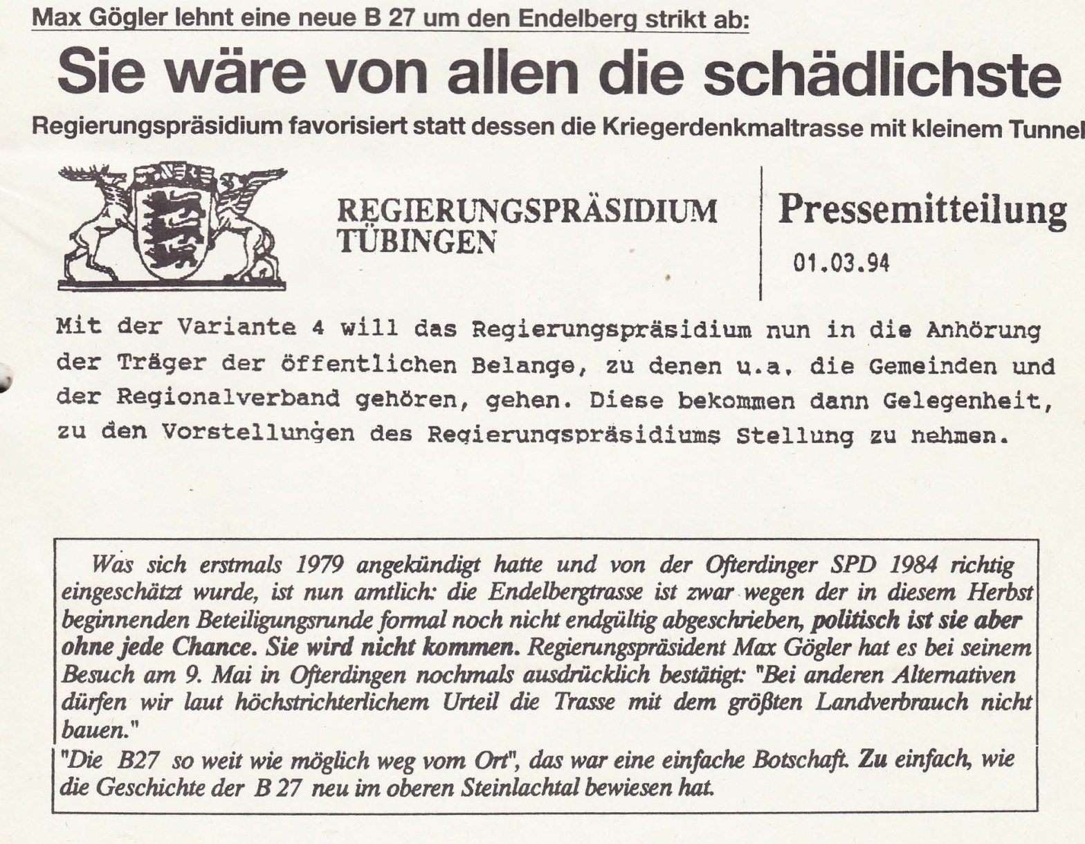 „Das Regierungspräsidium Tübingen wird als Anhörungs- und Planfeststellungsbehörde